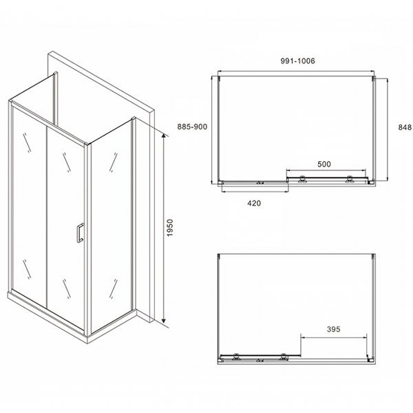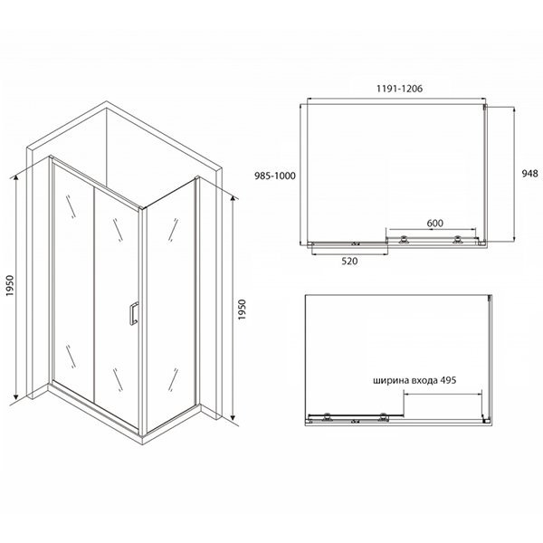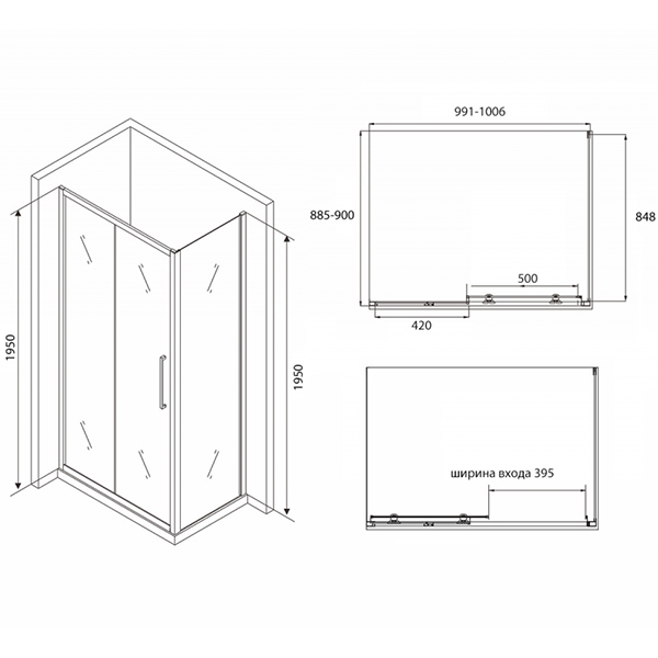 Душевые уголки со стеклом в цвете прозрачный, конструкция дверей раздвижная