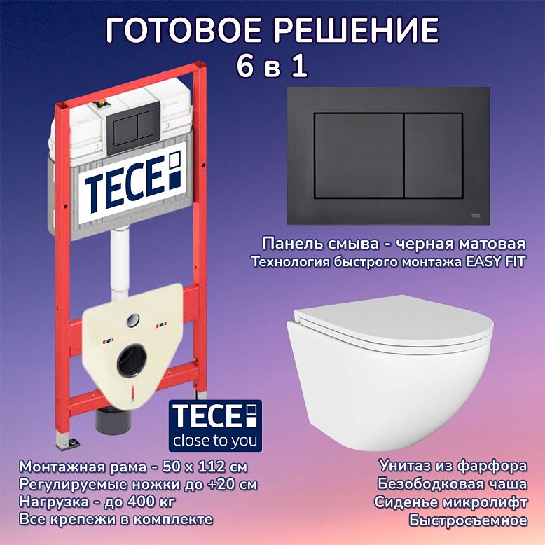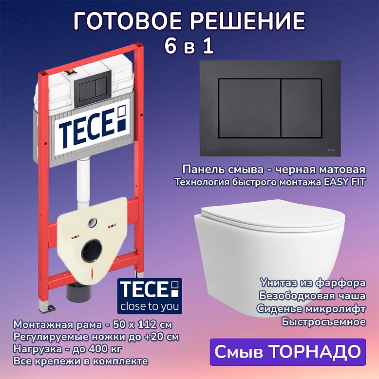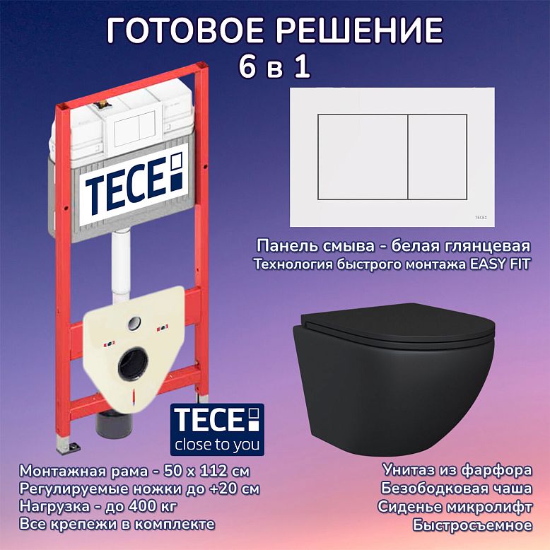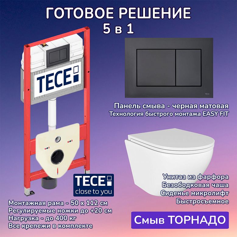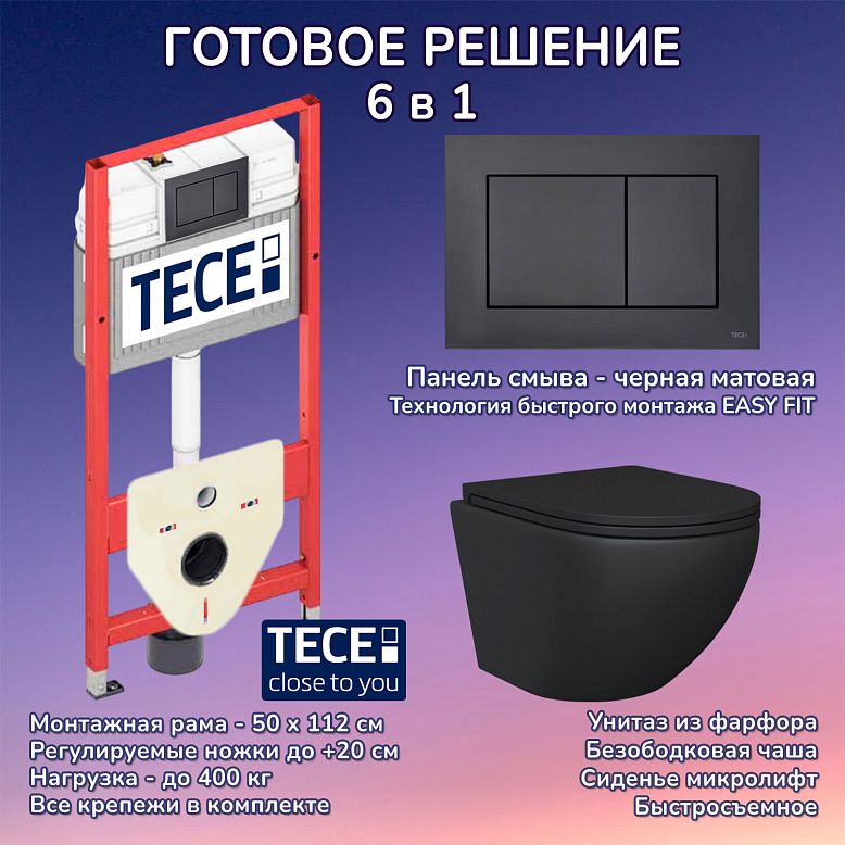 Комплект: Инсталляция TECE Base 2.0 9400414+Кнопка TECEnow черная+Verna Black JK3021028MB черный унитаз