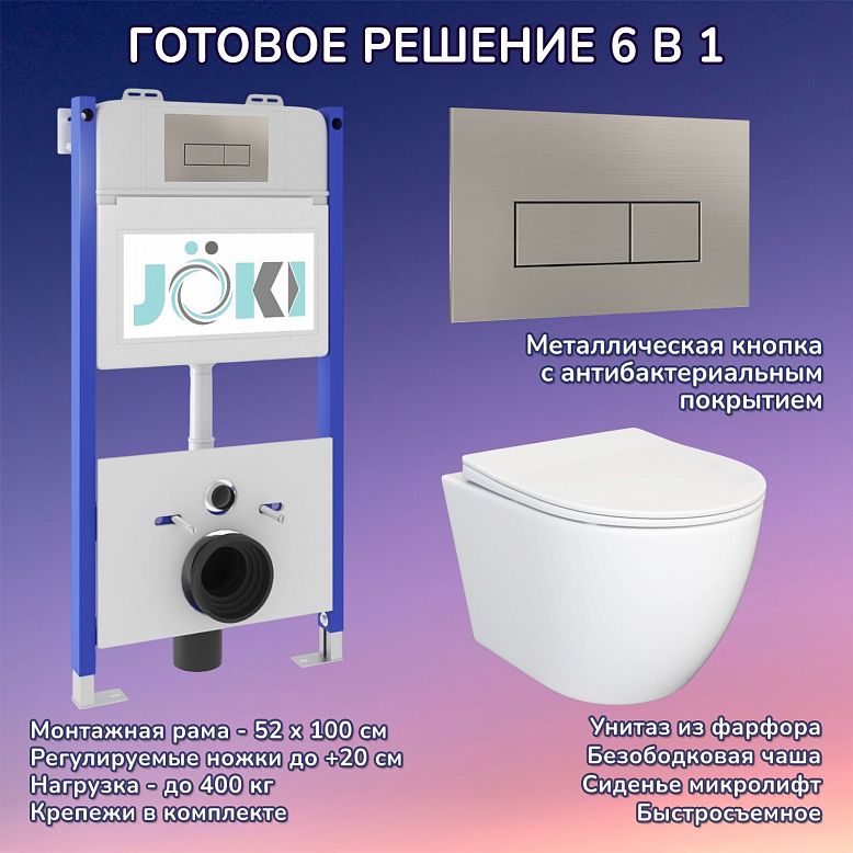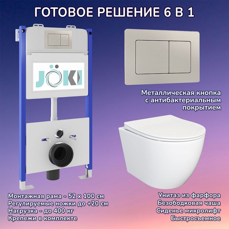 Комплект: JOKI Инсталляция JK03351+Кнопка JK021531WM белый+Stella JK1061016 унитаз белый