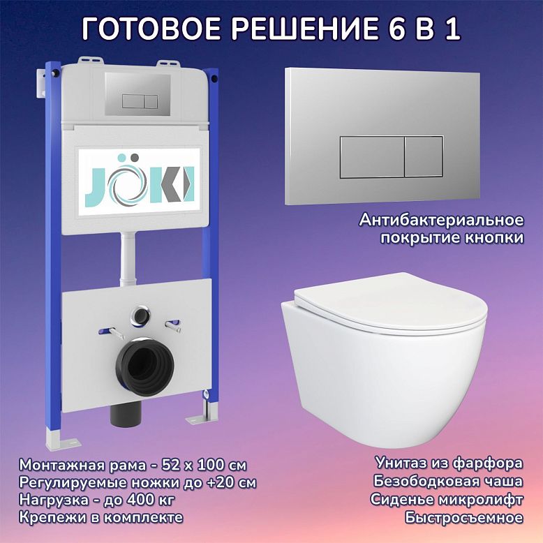 Комплект: JOKI Инсталляция JK03351+Кнопка JK012519CH хром+Stella JK1061016 унитаз белый