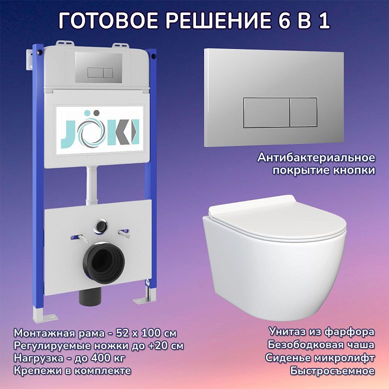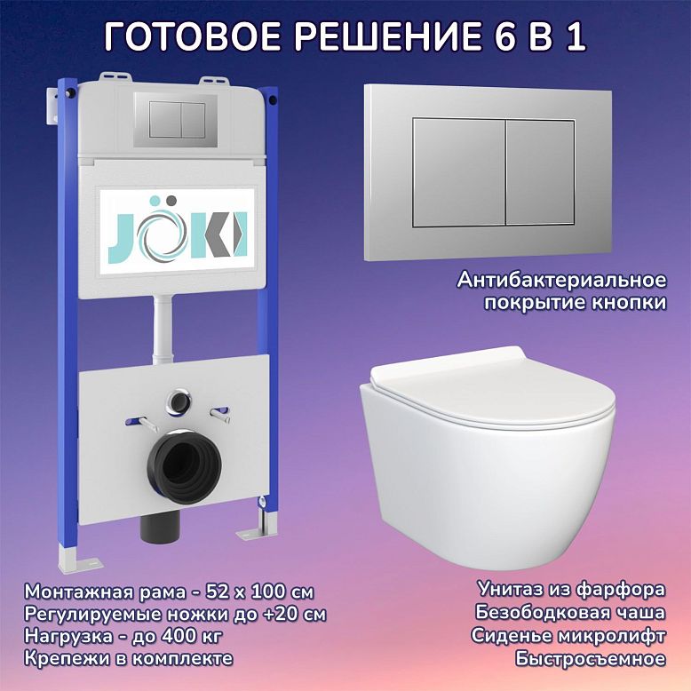 Комплект: JOKI Инсталляция JK03351+Кнопка JK012519CH хром+Stella JK1061016 унитаз белый