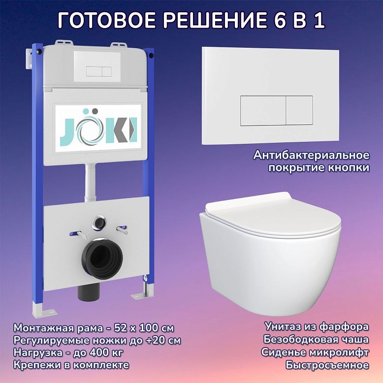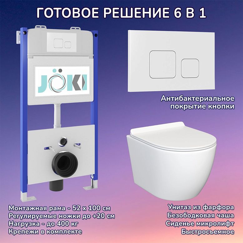 Комплект: JOKI Инсталляция JK03351+Кнопка JK020522WM белый+Stella JK1061016 унитаз белый