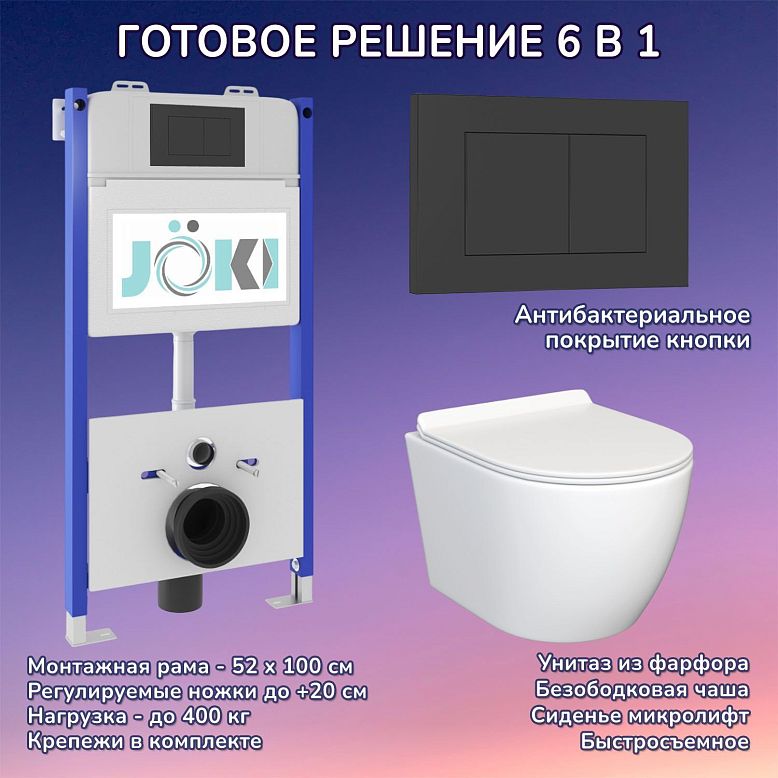 Комплект: JOKI Инсталляция JK03351+Кнопка JK203507BM черный+Stella JK1061016 унитаз белый