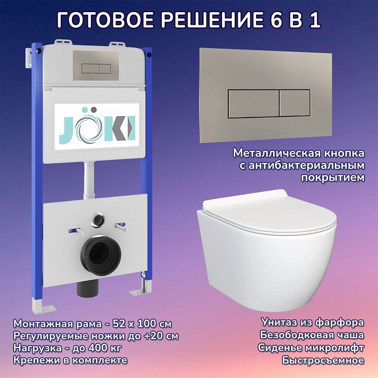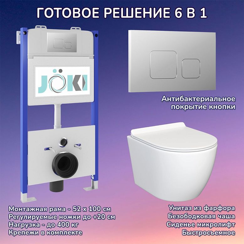 Комплект: JOKI Инсталляция JK03351+Кнопка JK021531WM белый+Stella JK1061016 унитаз белый