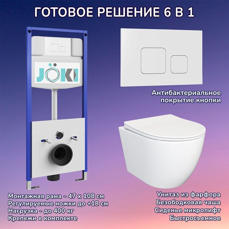 Комплект: Инсталляция JK03553+Кнопка JK020522WM белая+Stella JK1061016 белый унитаз