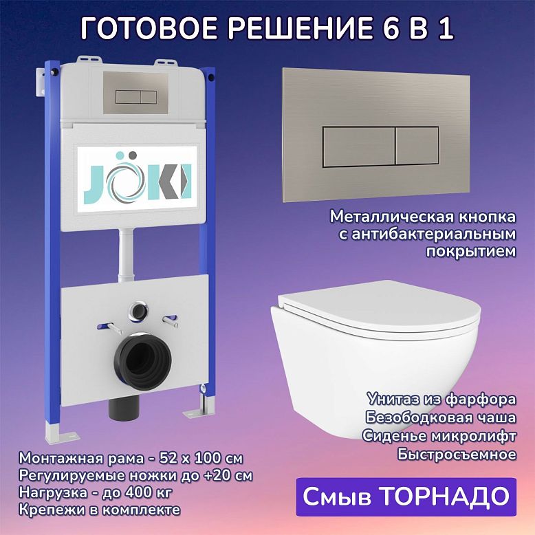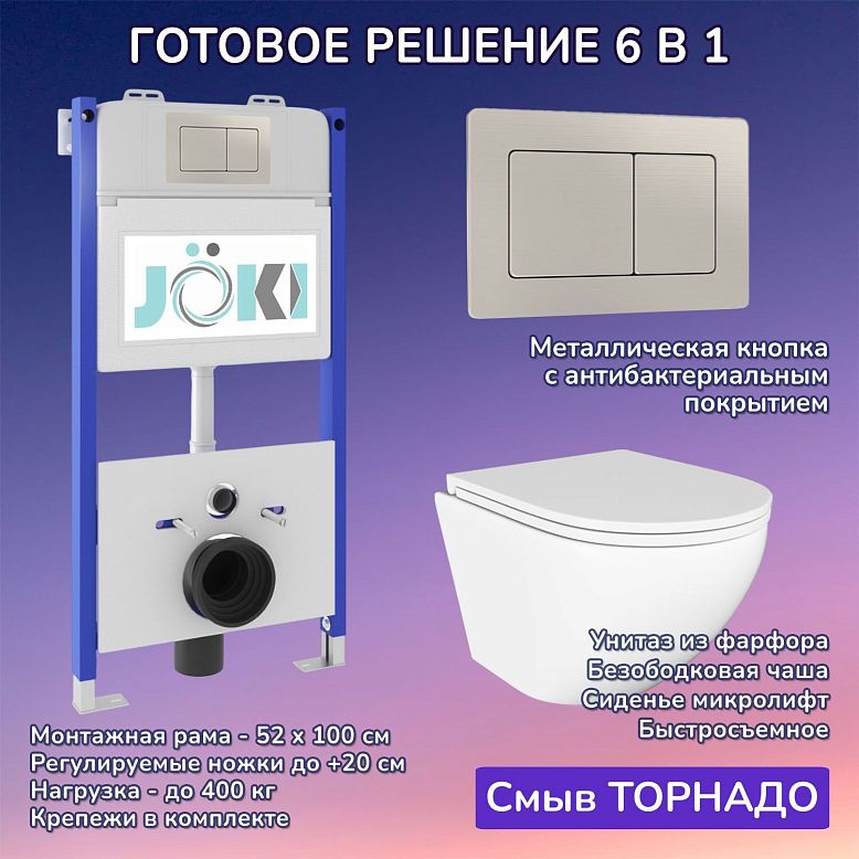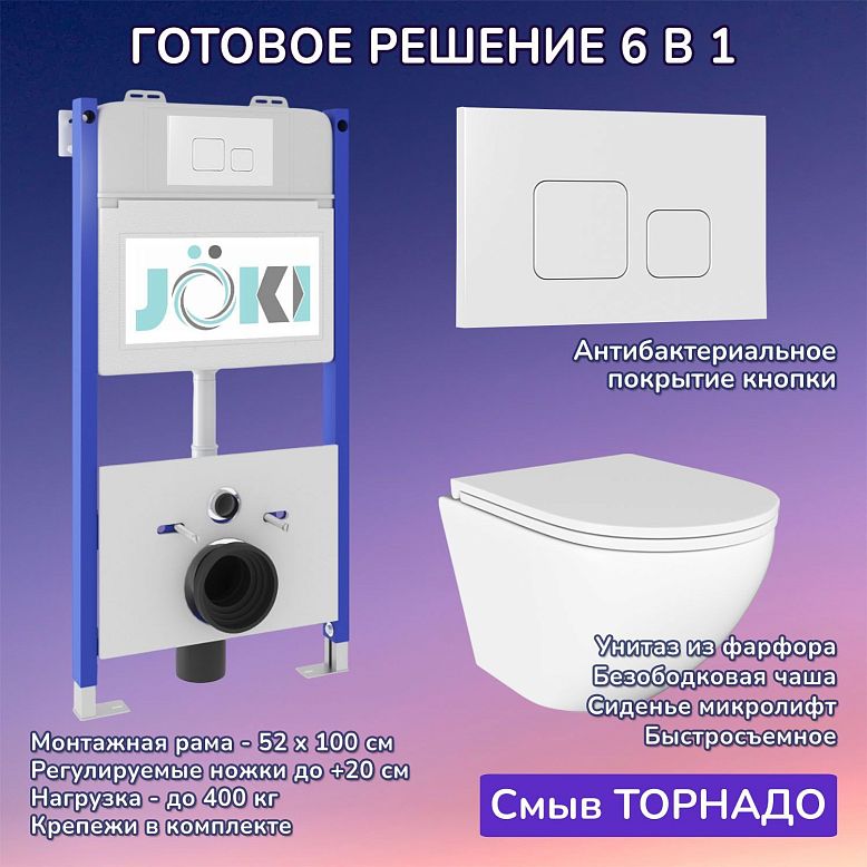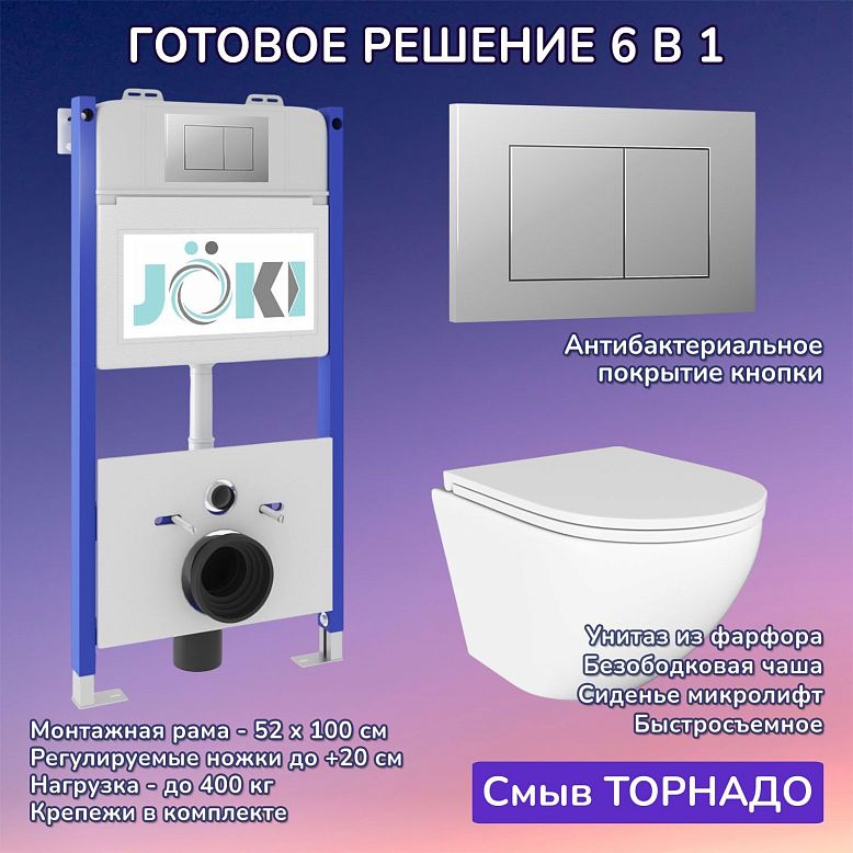 Комплект: JOKI Инсталляция JK03351 + Кнопка JK202501CH хром + Stella T JK1101010 унитаз белый, смыв Торнадо