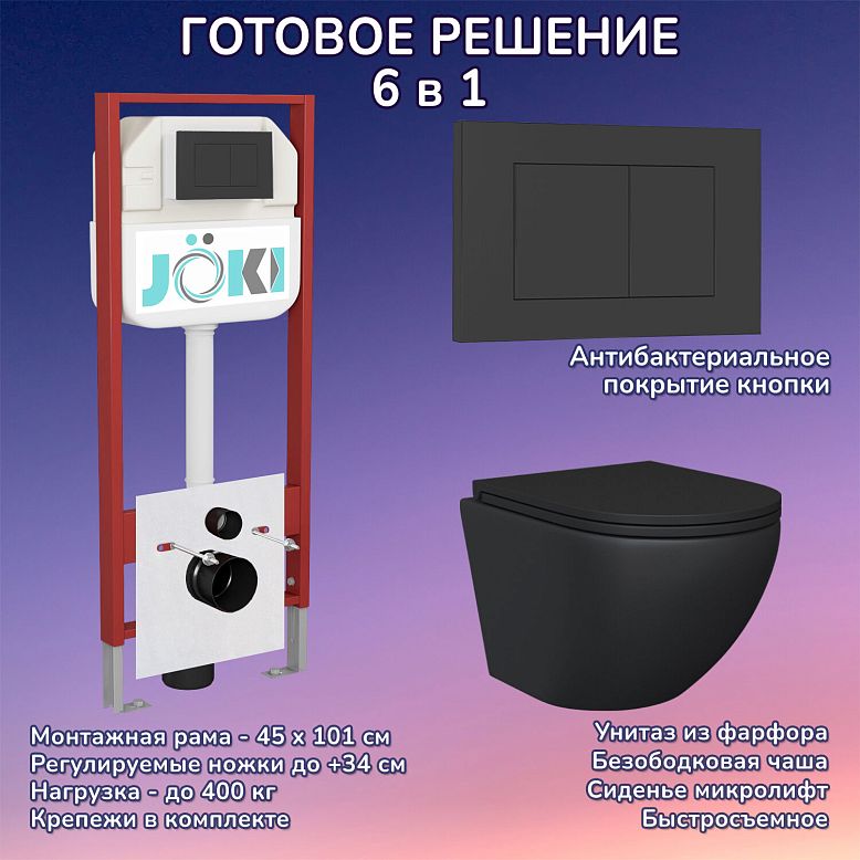 Комплект: Инсталляция JK45045 + Кнопка JK203507BM черная + Stella Black JK1111019MB черный унитаз
