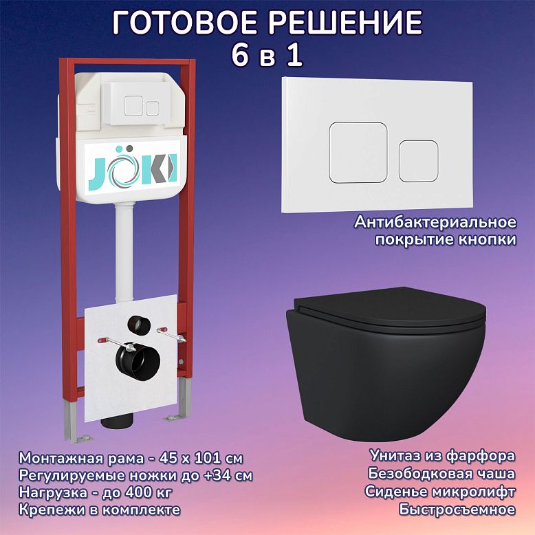 Комплект: Инсталляция JK45045 + Кнопка JK020522WM белая + Stella Black JK1111019MB черный унитаз