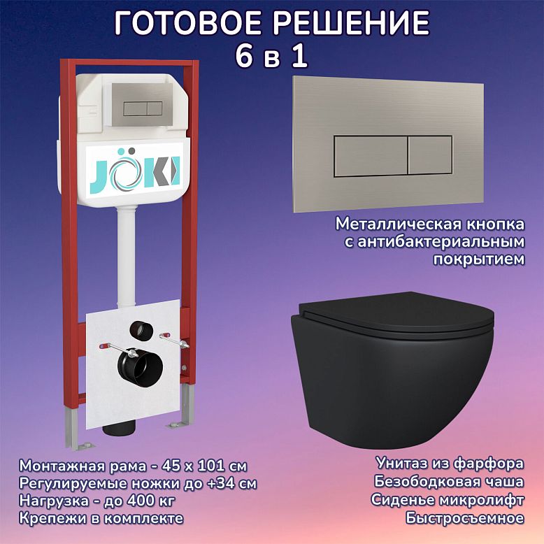 Комплект: Инсталляция JK45045+Кнопка JK204546 сталь+Stella Black JK1111019MB черный унитаз
