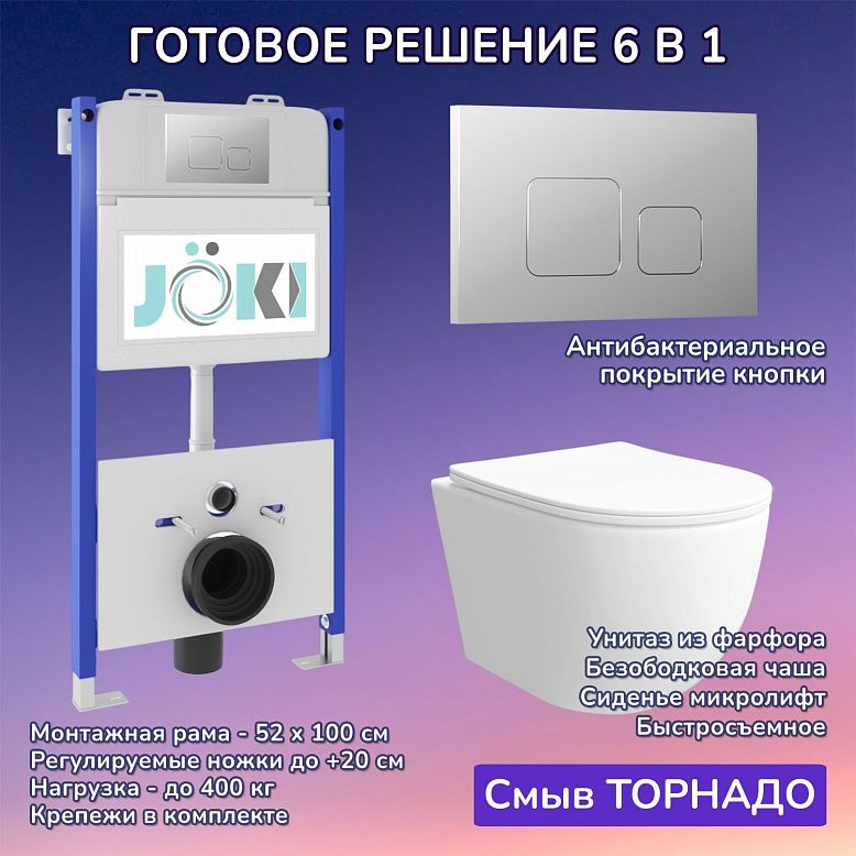 Комплект: Инсталляция JK03351+Кнопка JK206549 белая/хром+Stella XL T JK0011011 белый унитаз, смыв торнадо