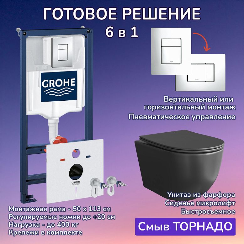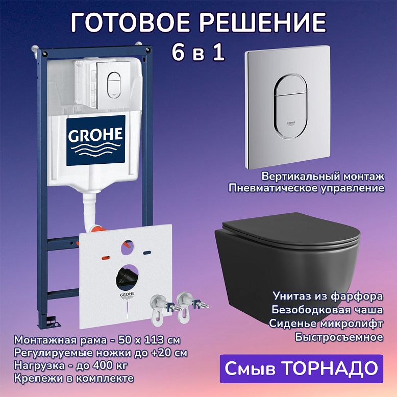Комплект: Инсталляция Grohe 38772001 кнопка хром+Stella XL T JK5751039MB черный унитаз, смыв торнадо