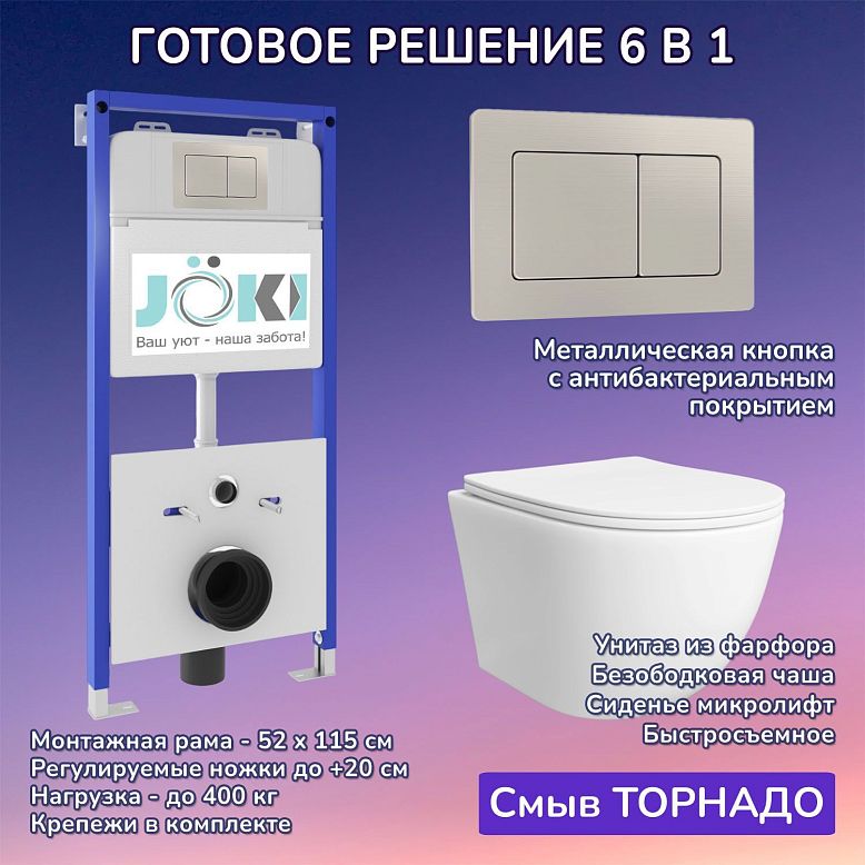 Комплект: Инсталляция JK01150 + Кнопка JK204546 сталь + Stella T JK1121064 белый унитаз, смыв торнадо