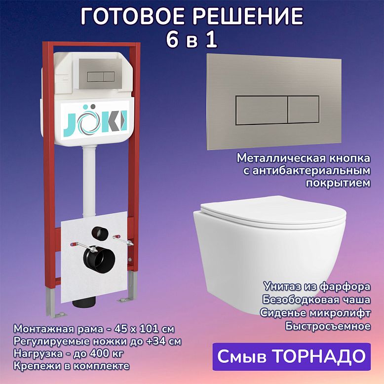 Комплект: Инсталляция JK45045 + Кнопка JK204546 сталь + Stella T JK1121064 белый унитаз, смыв торнадо
