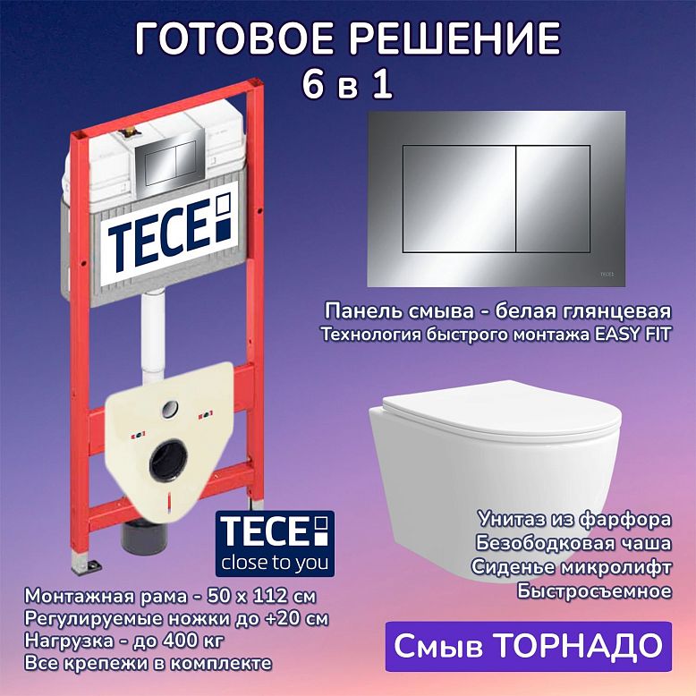 Комплект: Инсталляция TECE Base 2.0 9400412+Кнопка TECEnow хром+Stella XL T JK0011011 белый унитаз, смыв торнадо