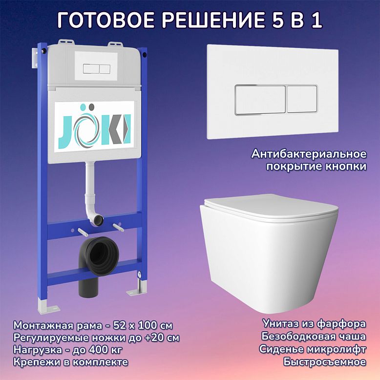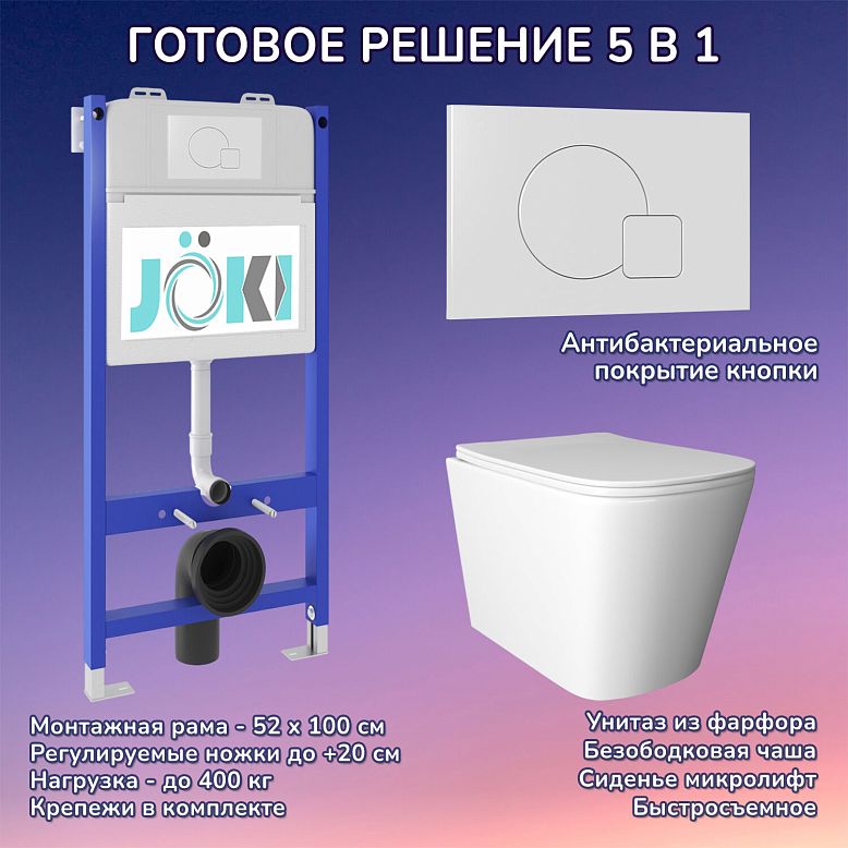 Комплект: Joki Инсталляция JK03351 + Кнопка JK020522WM белая + Унитаз Verna JK3021022 белый