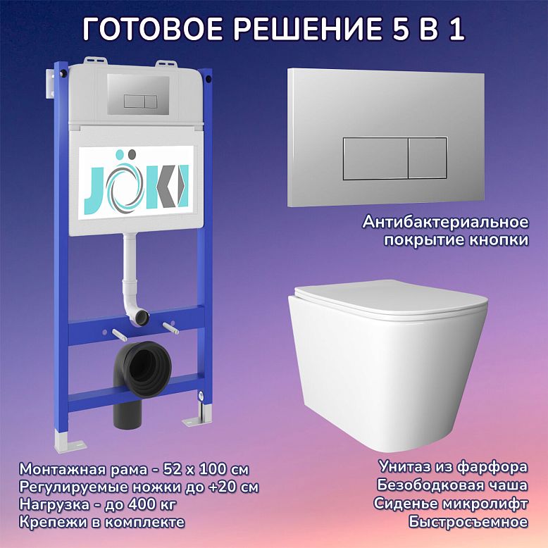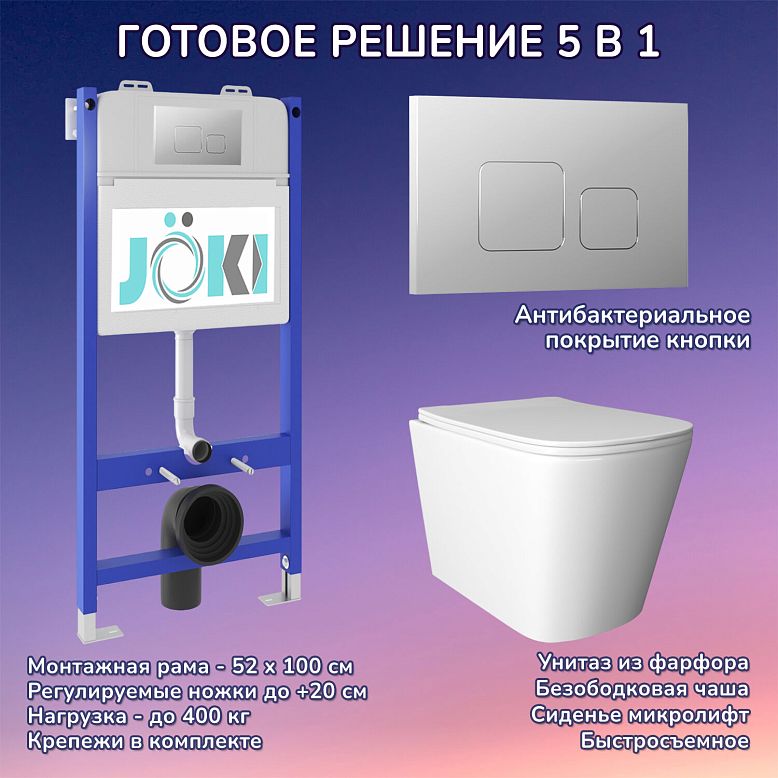 Комплект: Joki Инсталляция JK03351 + Кнопка JK701528CH хром + Унитаз Verna JK3021022 белый