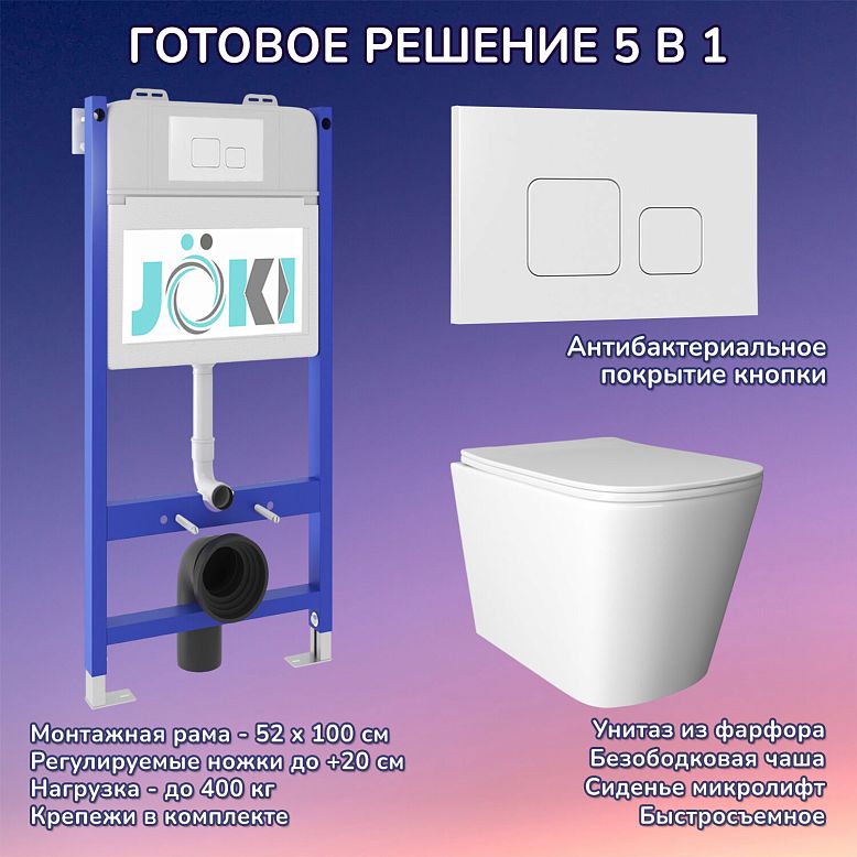 Комплект: Joki Инсталляция JK03351 + Кнопка JK018504WM белая + Унитаз Verna JK3021022 белый