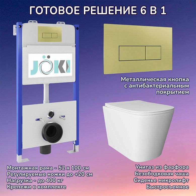 Комплект: Инсталляция JK03351+Кнопка JK207550 золото+Verna JK3021022 белый унитаз