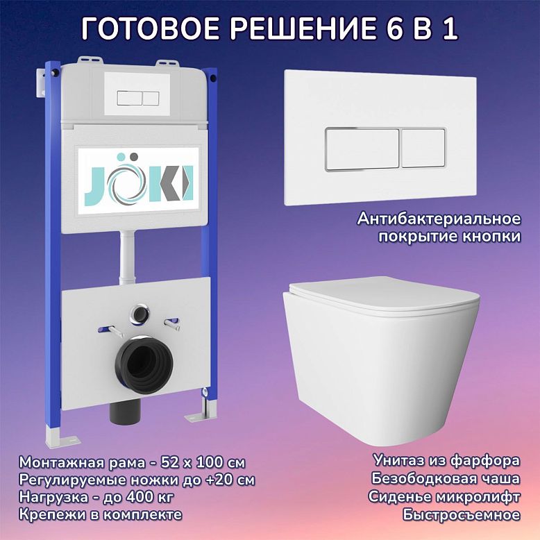 Комплект: Joki Инсталляция JK03351 + Кнопка JK020522WM белая + Унитаз Verna JK3021022 белый