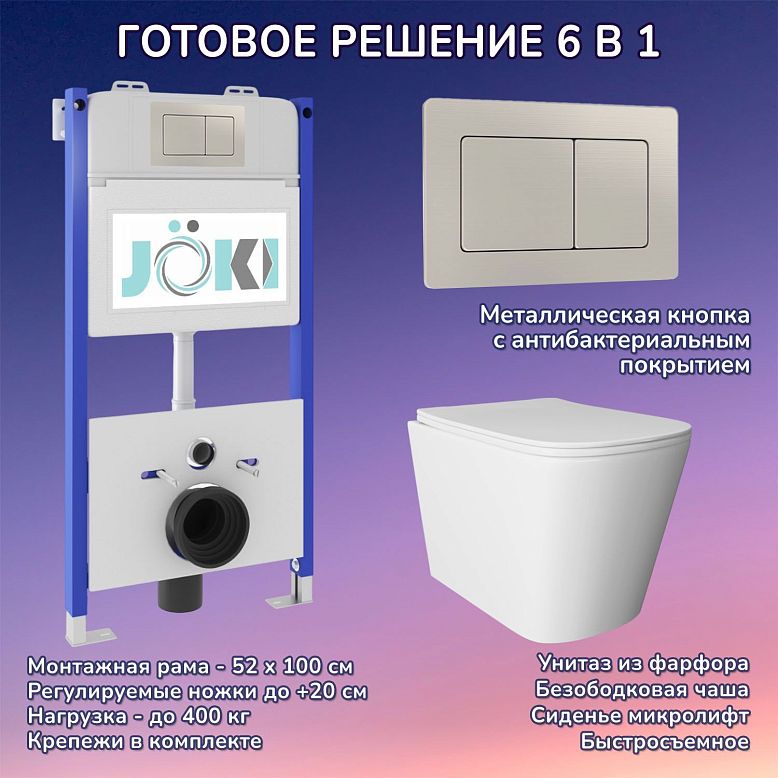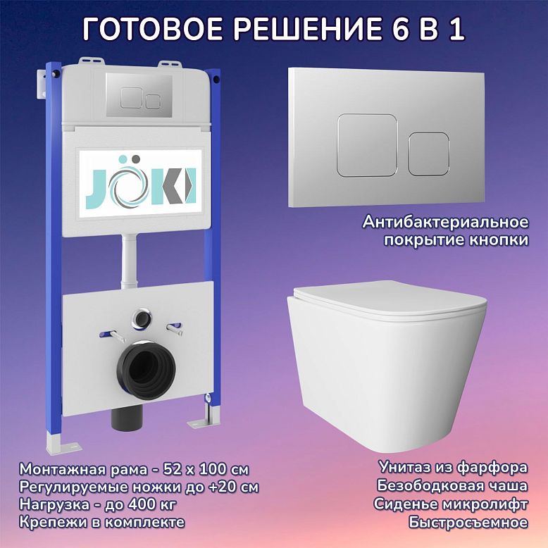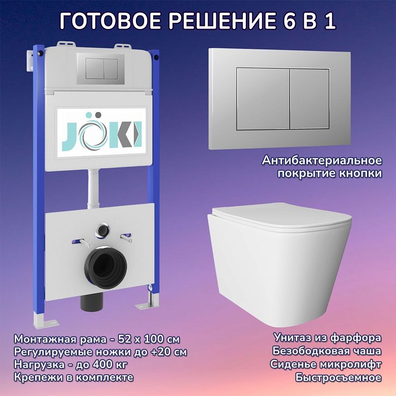 Комплект: Joki Инсталляция JK03351 + Кнопка JK701528CH хром + Унитаз Verna JK3021022 белый