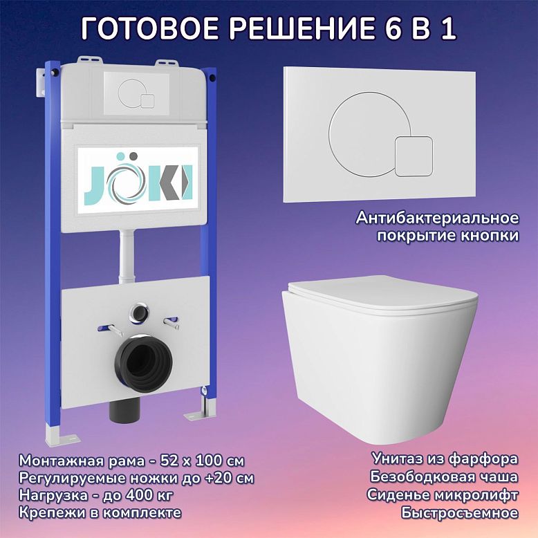 Комплект: Joki Инсталляция JK03351 + Кнопка JK018504WM белая + Унитаз Verna JK3021022 белый
