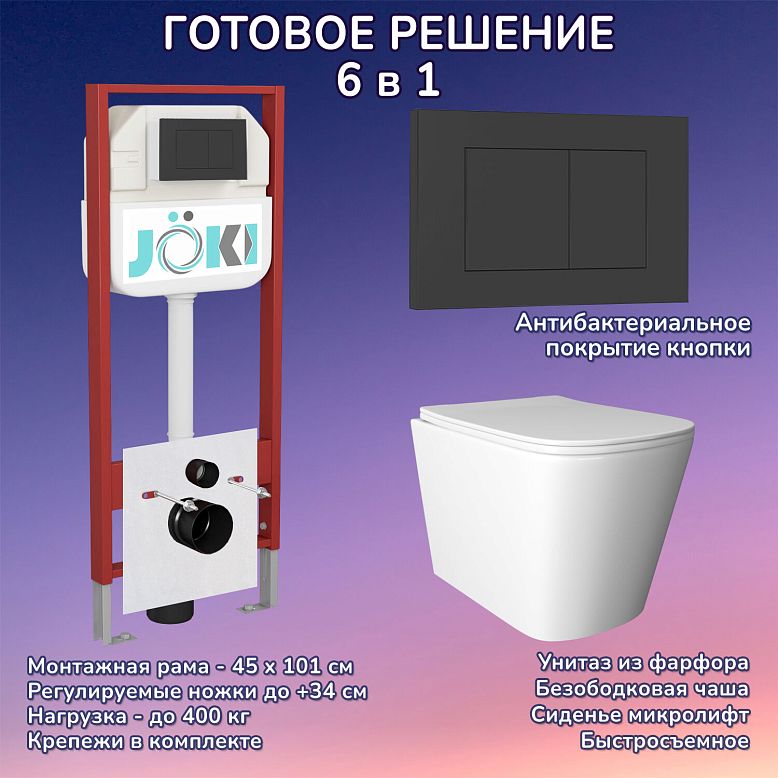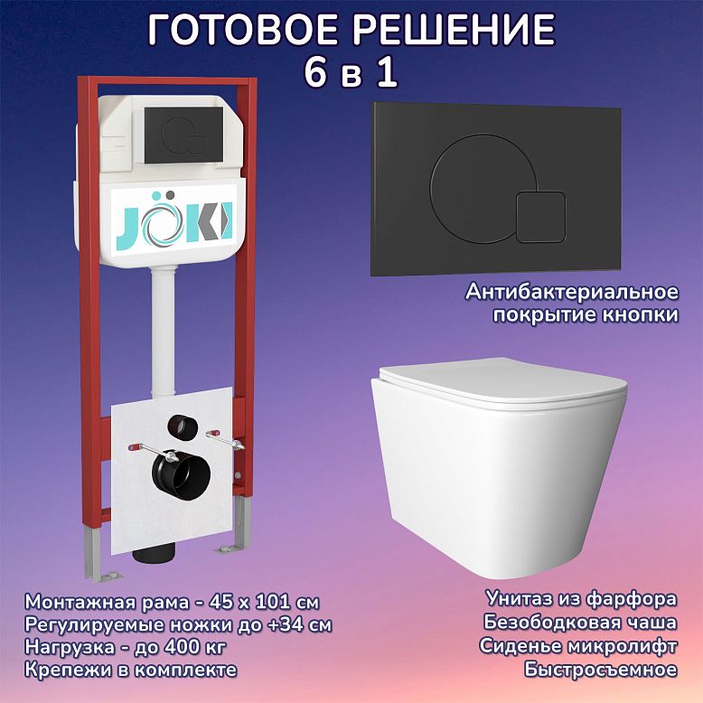 Комплект: Инсталляция JK45045 + Кнопка JK203507BM черная + Verna JK3021022 белый унитаз