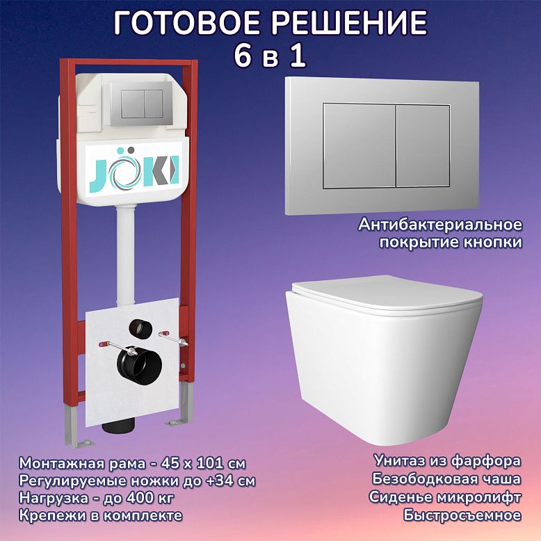 Комплект: Инсталляция JK45045 + Кнопка JK202501CH хром + Verna JK3021022 белый унитаз