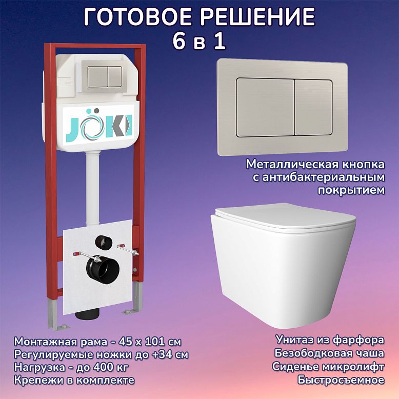 Комплект: Инсталляция JK45045 + Кнопка JK204546 сталь + Verna JK3021022 белый унитаз