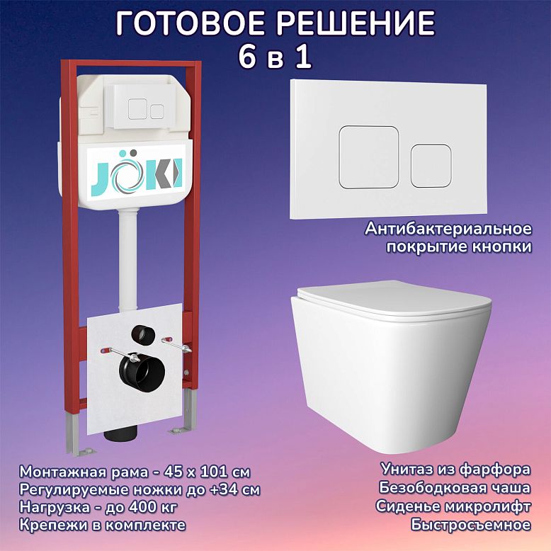 Комплект: Инсталляция JK45045 + Кнопка JK020522WM белая + Verna JK3021022 белый унитаз