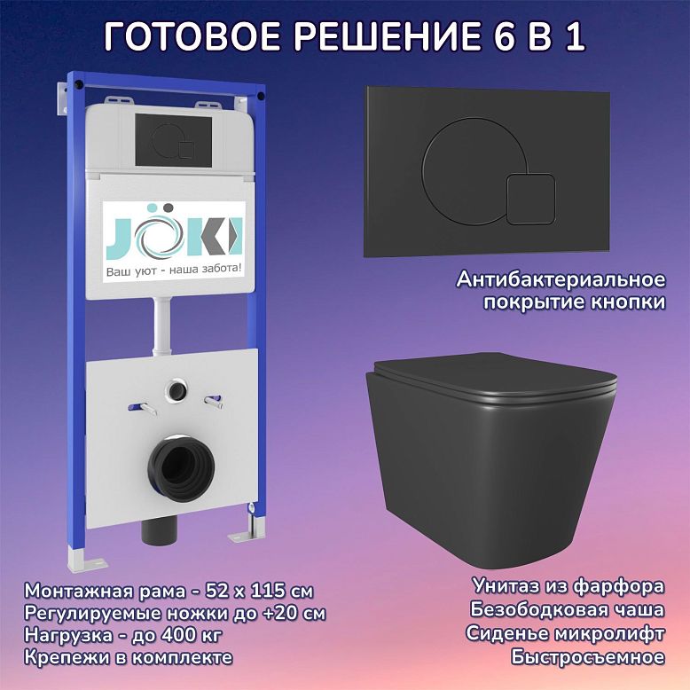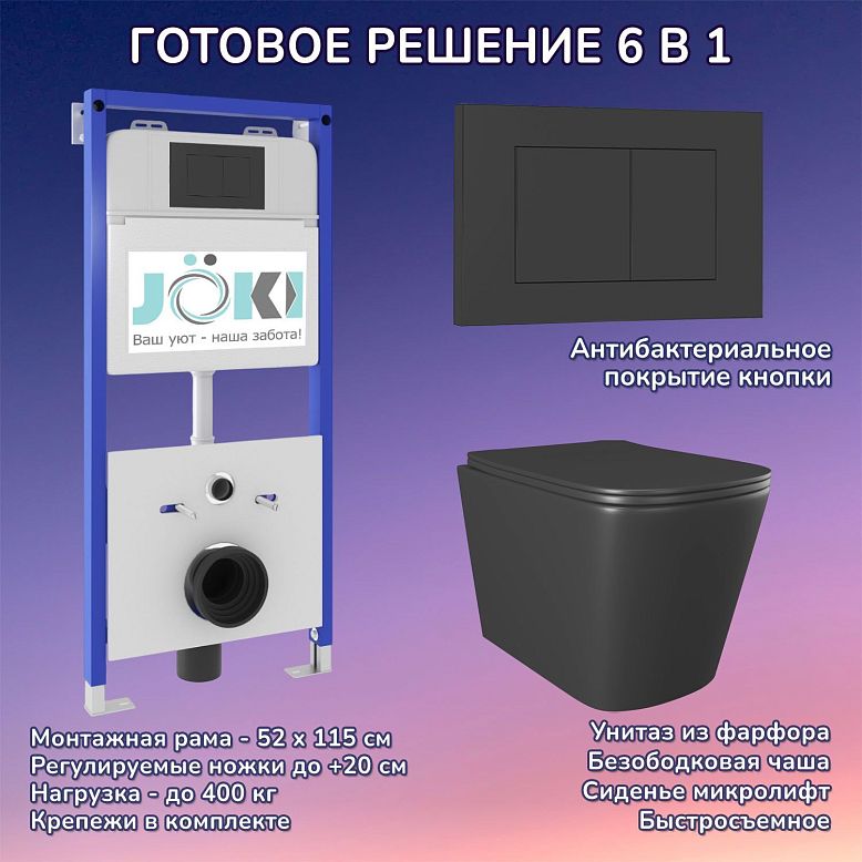 Комплект: Инсталляция JK01150 + Кнопка JK702534BM черная + Verna JK3021028MB черный унитаз