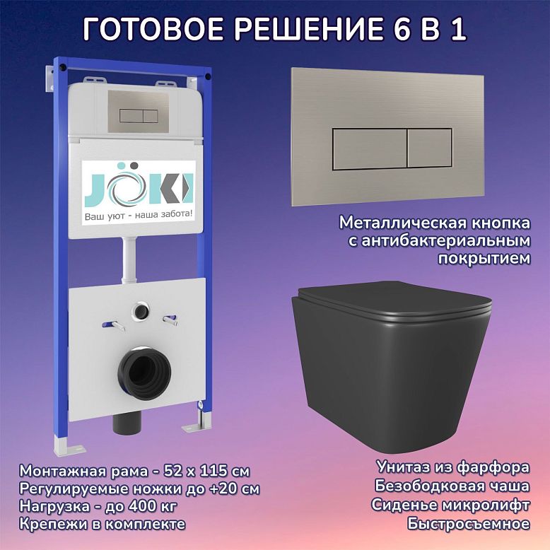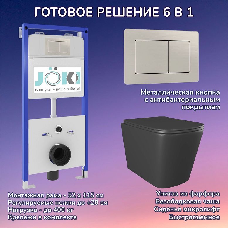 Комплект: Инсталляция JK01150 + Кнопка JK014564 сталь + Verna JK3021028MB черный унитаз