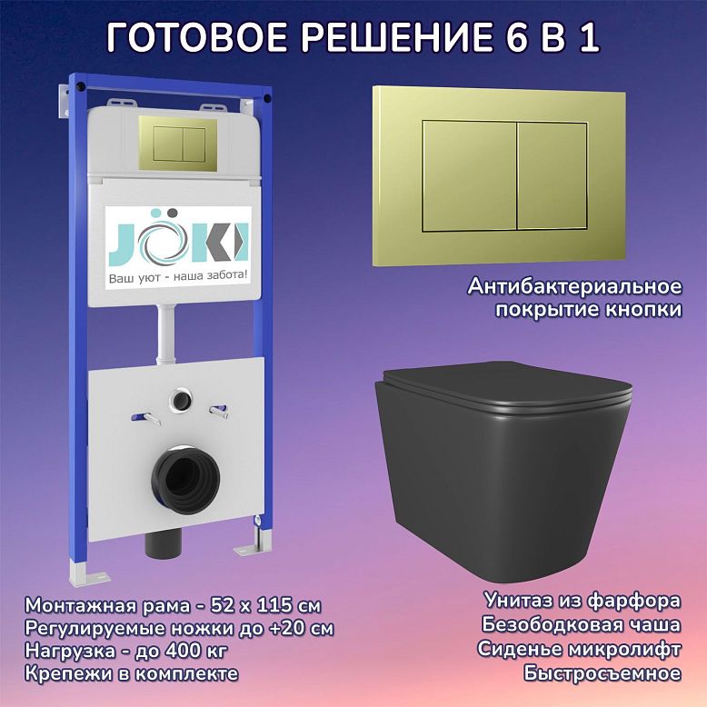 Комплект: Инсталляция JK01150+Кнопка JK207550 золото+Verna JK3021028MB черный унитаз