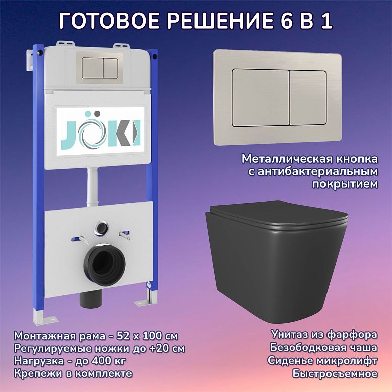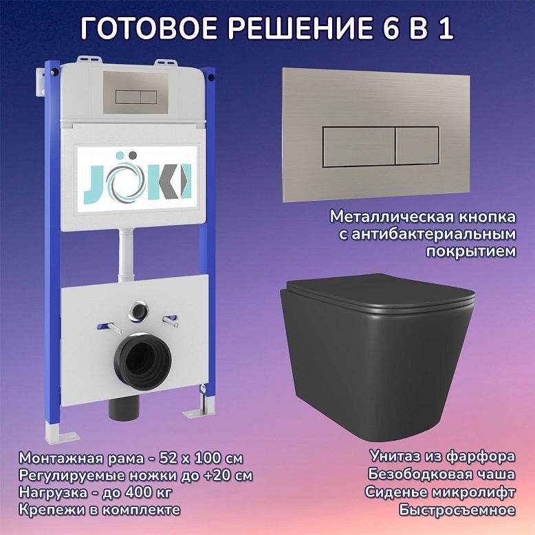 Комплект: Инсталляция JK03351 + Кнопка JK204546 сталь + Verna JK3021028MB черный унитаз