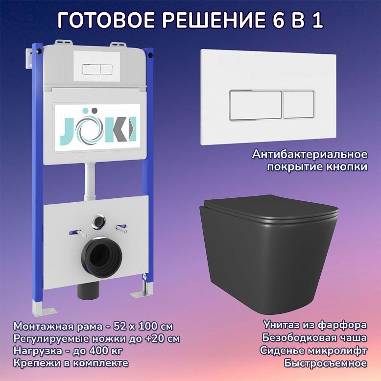 Комплект: Инсталляция JK03351 + Кнопка JK203507BM черный + Verna Black JK3021028MB унитаз черный