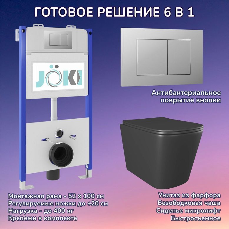 Комплект: Инсталляция JK03351 + Кнопка JK205552 черная / хром + Verna JK3021028MB черный унитаз