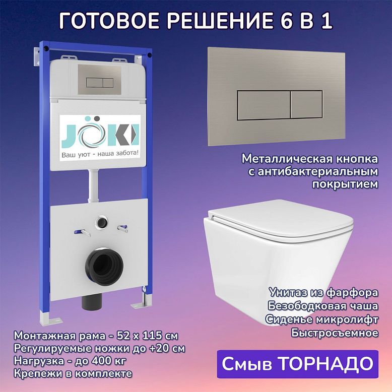 Комплект: JOKI Инсталляция JK01150+Кнопка JK021531WM белый+Verna T JK3031025 белый унитаз, смыв Торнадо