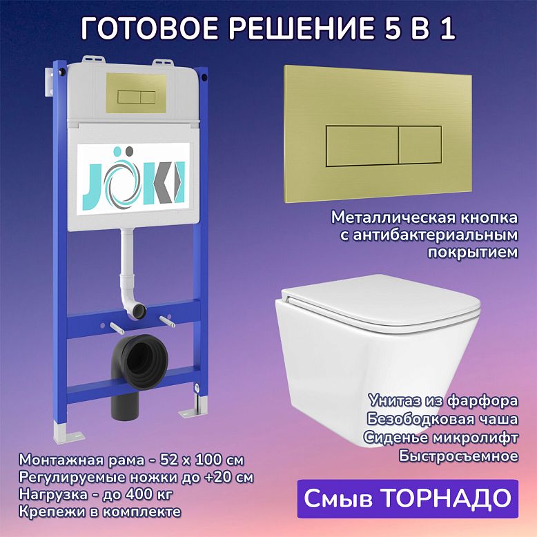 Комплект: Инсталляция JK03351+Кнопка JK007551 золото+Verna T JK3031025 белый унитаз, смыв торнадо