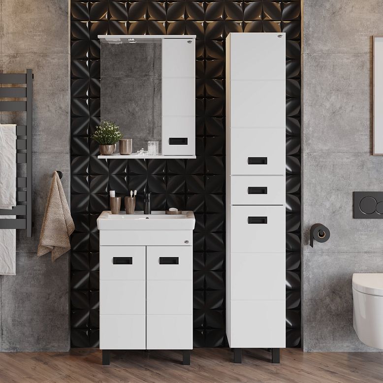 Мебель для ванной Оника Балтика-Квадро Black 55, цвет белый / черный